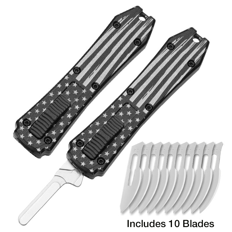OTF Utility Knife with 10pcs Carbon Steel Blades, Metal Handle, Precision Craft DIY Tool for Office Home Arts